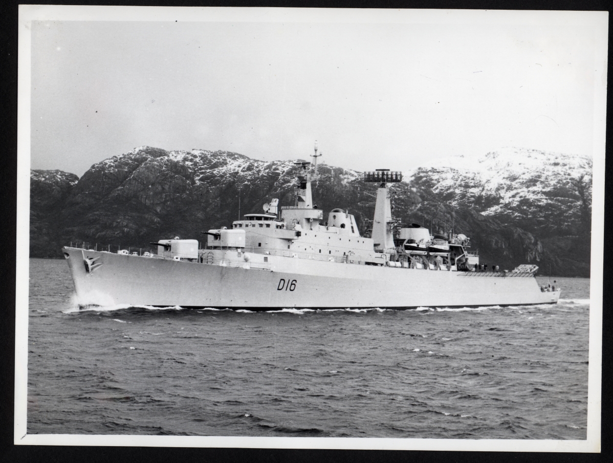 H.M.S. London going through Trinidad Channel on route to Punta Arenas October 1964